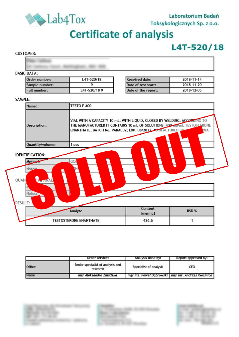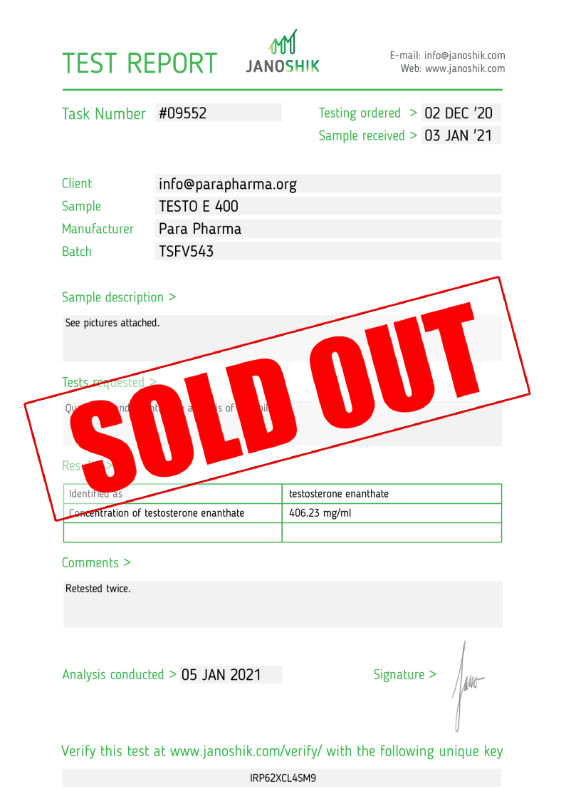 TESTO E 400 Para Pharma EXPRESS US DOMESTIC